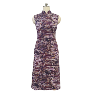 Purple Abstract Lycra Cotton Print Cocktail Cheongsam