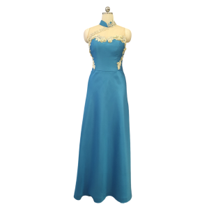 Turquoise Shantung Silk Long Cheongsam with Applique Work